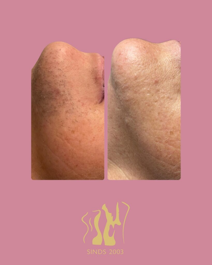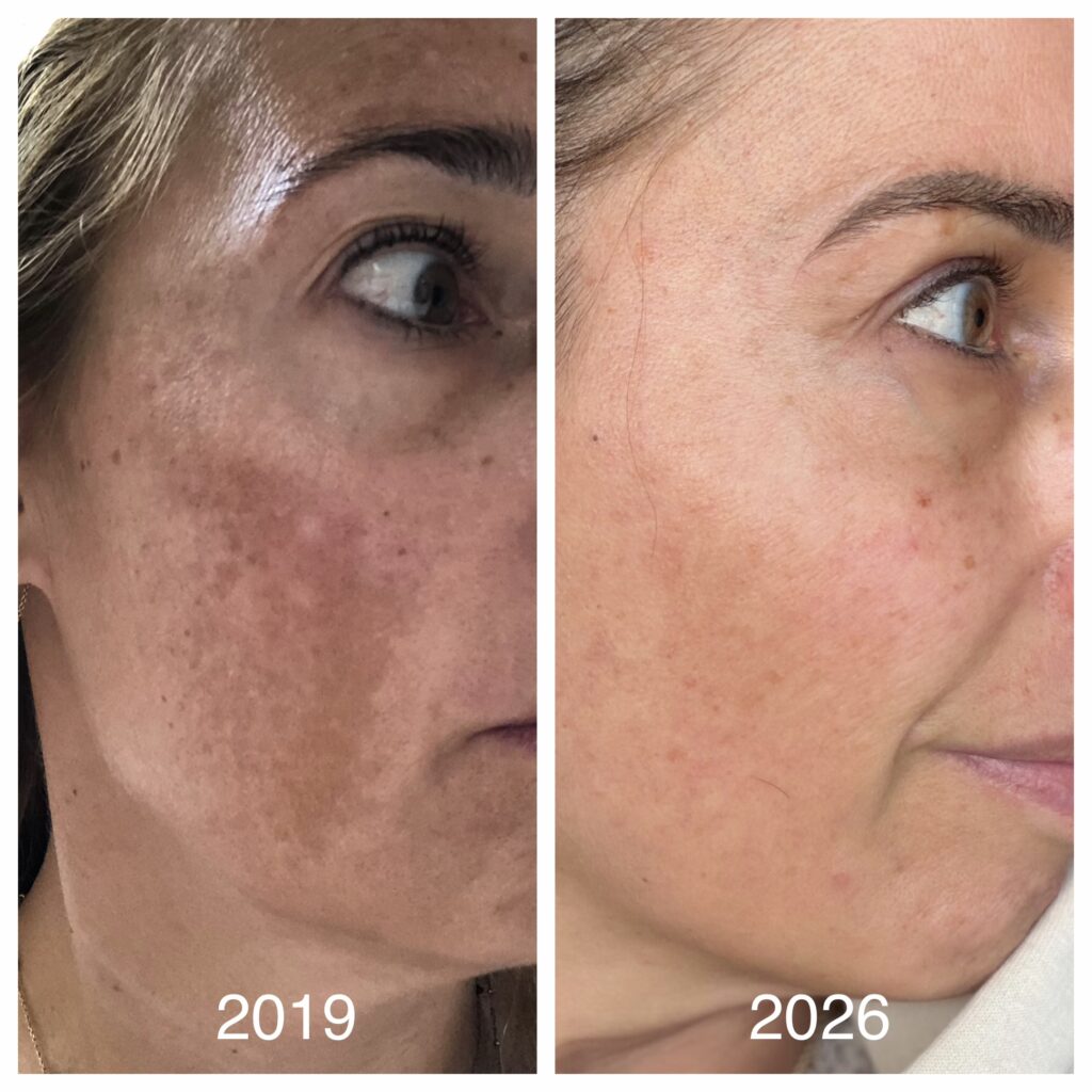 Hieronder ziet u een foto gemaakt direct na een behandeling direct na de zomervakantie. Momenteel (september 2025) ben ik bezig met een deep sea kuur om het pigment weer verder terug te dringen zoals u verder naar beneden ziet.